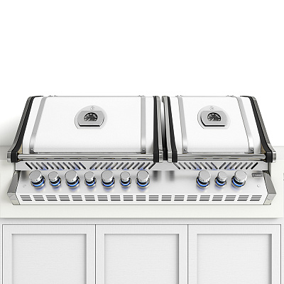 После сборки, начинают внешнюю отделку, где гравируется лого компании или монограмма клиента. Потом лакируют при температуре 200С, хромируют, полируют, золотят или наносят слоями бронзу. Внутреннюю поверхность выдвижных ящиков обтягивают нежной кожей, подобной которой используют для шитья сумок Гуччи. Красота фартука выделяется плиткой с рельефом в тон общей композиции. Мастера также применяют старинный метод «утерянного воска», пришедший из процесса изготовления художественных шедевров. Всё очень утончённо и удобно.