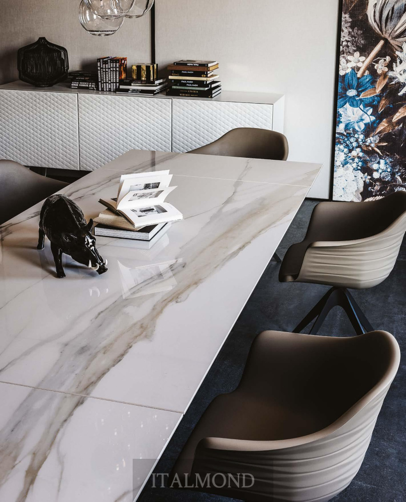 В зависимости от предпочтений, столешница может быть выполнена из высокопрочной керамики или ценной породы дерева. Это мебель премиум-качества, при создании которой производитель уделил особое внимание надежности раздвижного механизма.