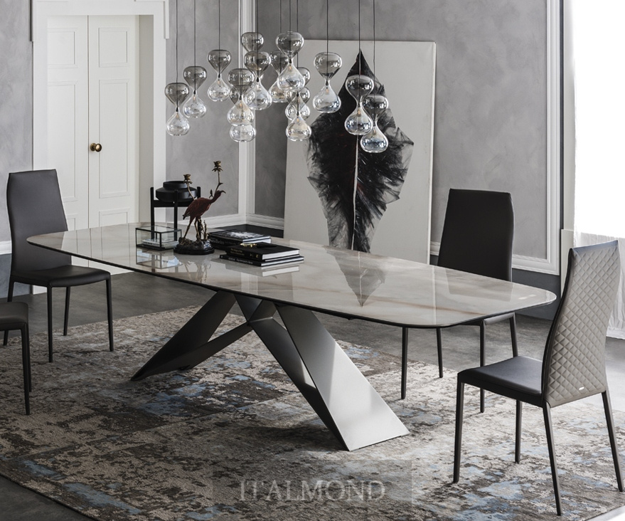 Модель обеденного стола входит в коллекцию Premier. Такой предмет интерьера сохранит свою функциональность и эстетику даже при ежедневном использовании. Современный силуэт и разнообразие отделок позволяют гармонично вписать эту элитную мебель в любое пространство — от строгой кухни до парадной гостиной, — обеспечивая максимальный комфорт.