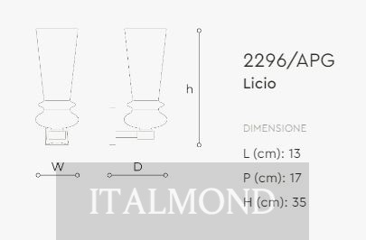 Дизайнерское бра Italamp 2296 Licio — совершенный баланс между традиционным мастерством стеклодувов Италии и современной эстетикой интерьерного дизайна. Модель привлекает внимание своим гармоничным силуэтом и мягкостью линий рассеивателя.
