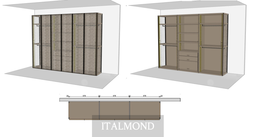 - Цвет и декор:корпус металл - Palladio , стекло - Vetro Trama Bronzo, внутренние детали - матовый лак Corda Opaco