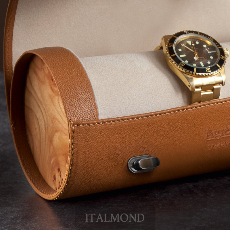 - Цвет и декор:Кожаный футляр для хранения часов из коричневой кожи и боковыми вставками из радики матовой отделки.