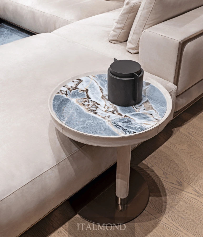 - Цвет и декор:столешница - OCEAN STORM натуральная кожа- LEATHER PRAY LEATHER - 5002/58 - GREY металл - SATIN CHAMPAGNE SATINATO