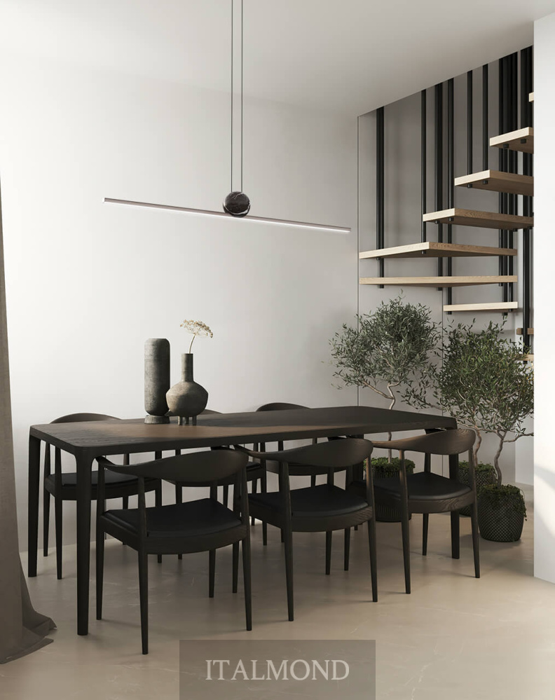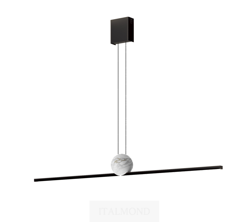 - Цвет и декор:Подвесной светильник с металлическим рассеивателем матового черного, матового цвета шампанского или теплого серого оттенка. Декоративный элемент из мрамора Calacatta Oro или Nero Marquinia.