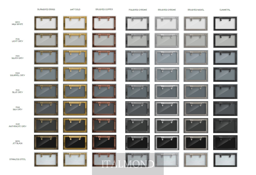 - Цвет и декор:Наша коллекция может быть выполнена в 42 стандартных глянцевых цветах, 56 стандартных матовых цветах и 14 специальных матовых цветах. Возможны и другие цвета на заказ. Другие варианты отделки доступны по запросу.
