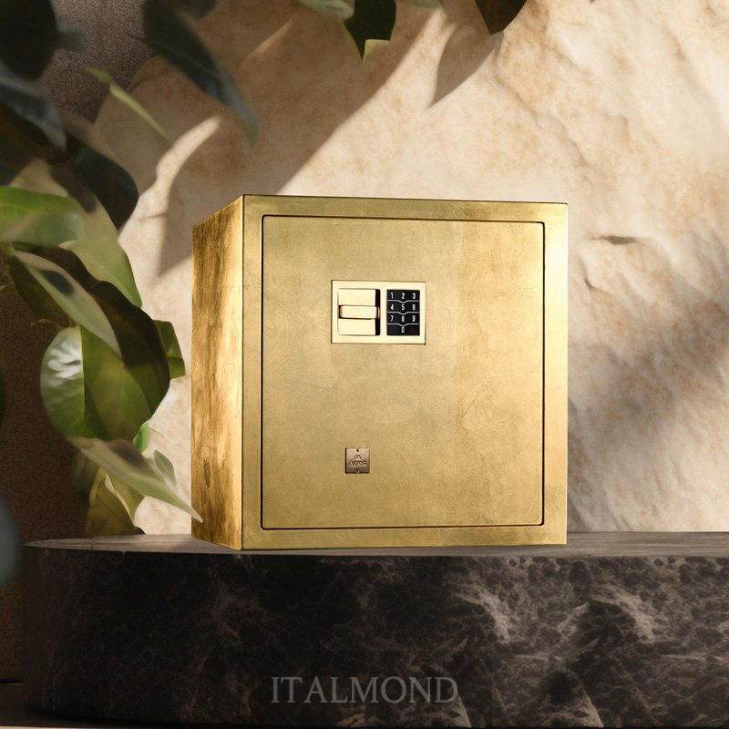 - Цвет и декор:Роскошный сейф для ювелирных изделий с отделкой из настоящей золотой фольги, глянцевое покрытие со всех четырёх сторон, разработан для идеального сочетания роскоши и практичности. Открытие с помощью сенсорной цифровой клавиатуры, питание от батареек. Внутреннее пространство оформлено выдвижными ящиками из матовой березовой фанеры, обито бежевой замшей, с фурнитурой из латуни, покрытой 24-каратным золотом. Выдвижной держатель для колье завершает комплект, обеспечивая безупречный порядок. Предусмотрена установка подзаводчиков часов швейцарского производства. Каждый элемент, от отделки до материалов, от внутренней компоновки до системы открытия, может быть полностью персонализирован для удовлетворения любых эстетических и функциональных требований.