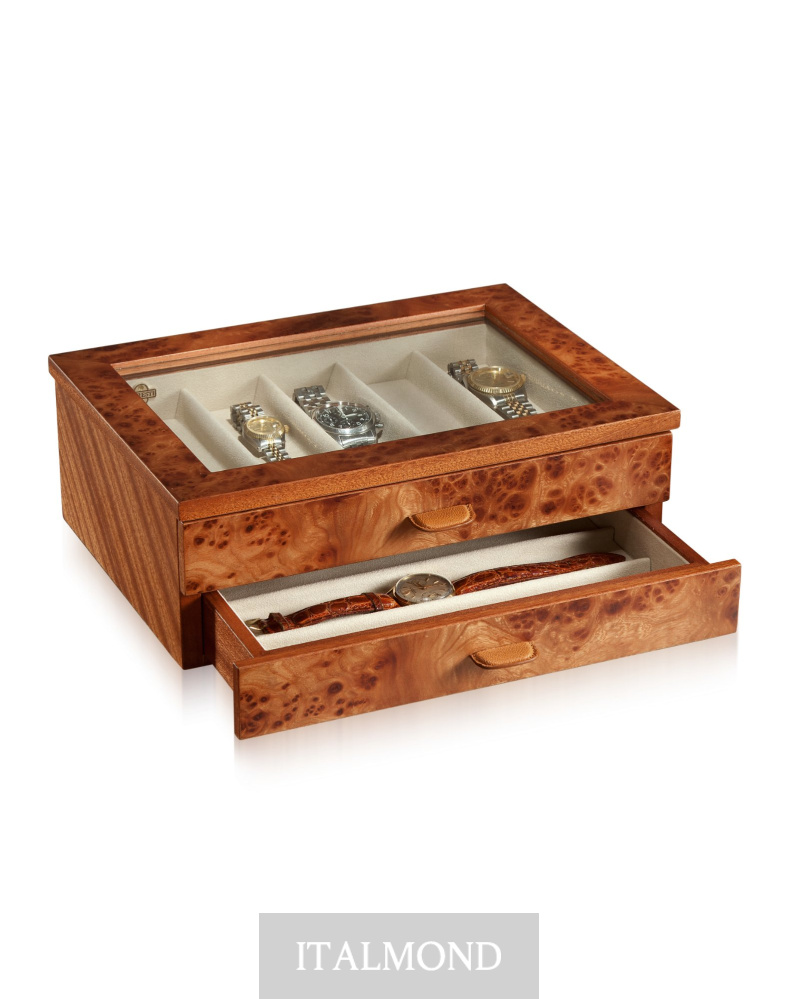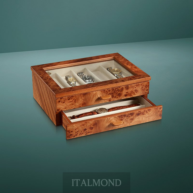 - Цвет и декор:Коробка из радики и красного дерева, два ящичка для 9 часов.