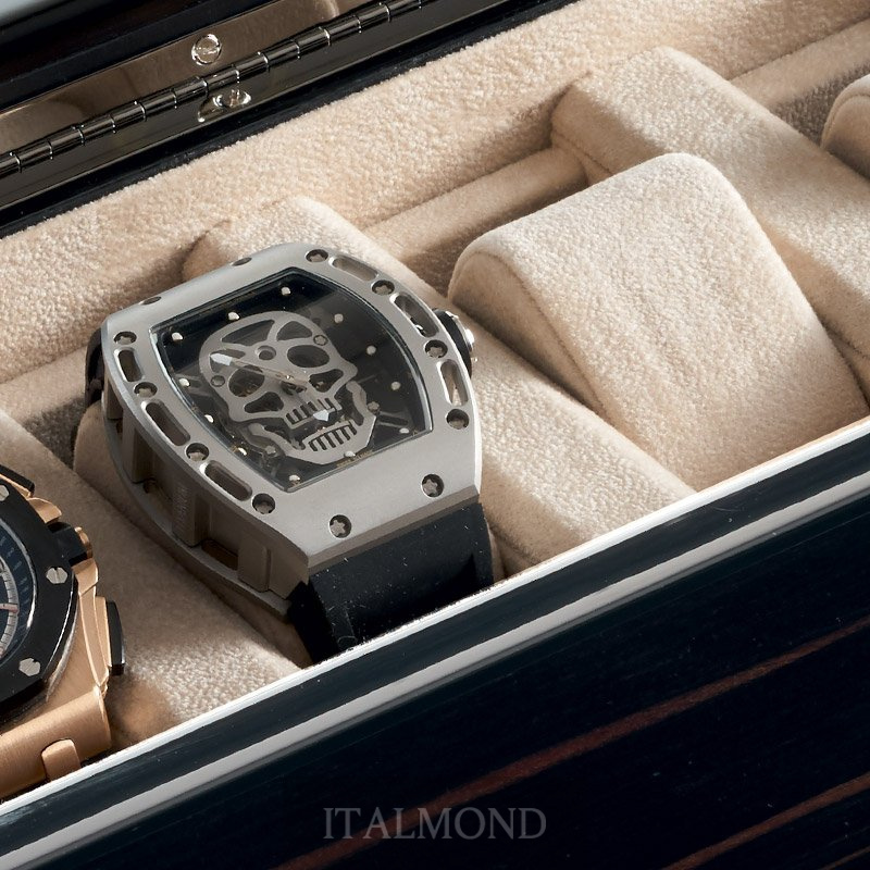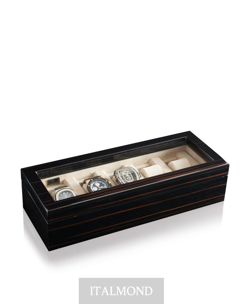 - Цвет и декор:Шкатулка из полированного эбенового дерева для 5 часов, с внутренней отделкой из защитной ультразамши. Петли из рутения