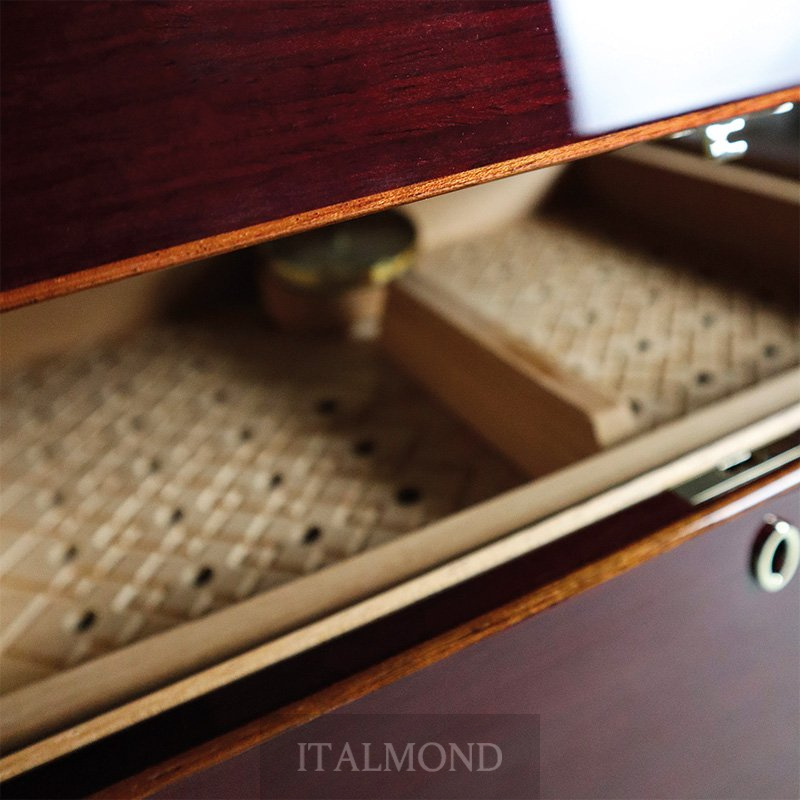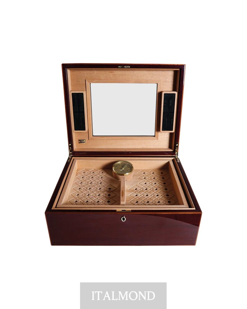 - Цвет и декор:Хьюмидор на 100 сигар из полированного красного дуба и отделкой из красного дерева. Внутри кедр премиум класса. Два увлажнителя и гигрометр немецкого производства. Съемный поднос с гравированной текстурой. Закрывается замком с позолоченным покрытием.
