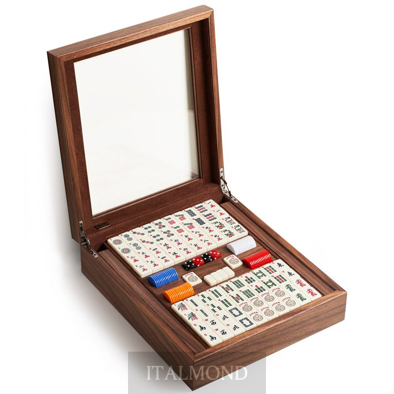 - Цвет и декор:Маджонг из орехового дерева Каналетто в матовой отделке и детялями из латуни, покрытой рутением.