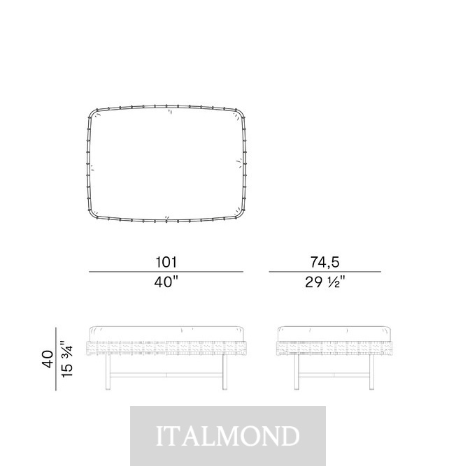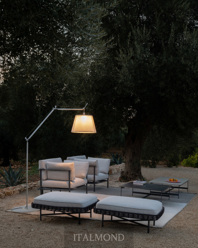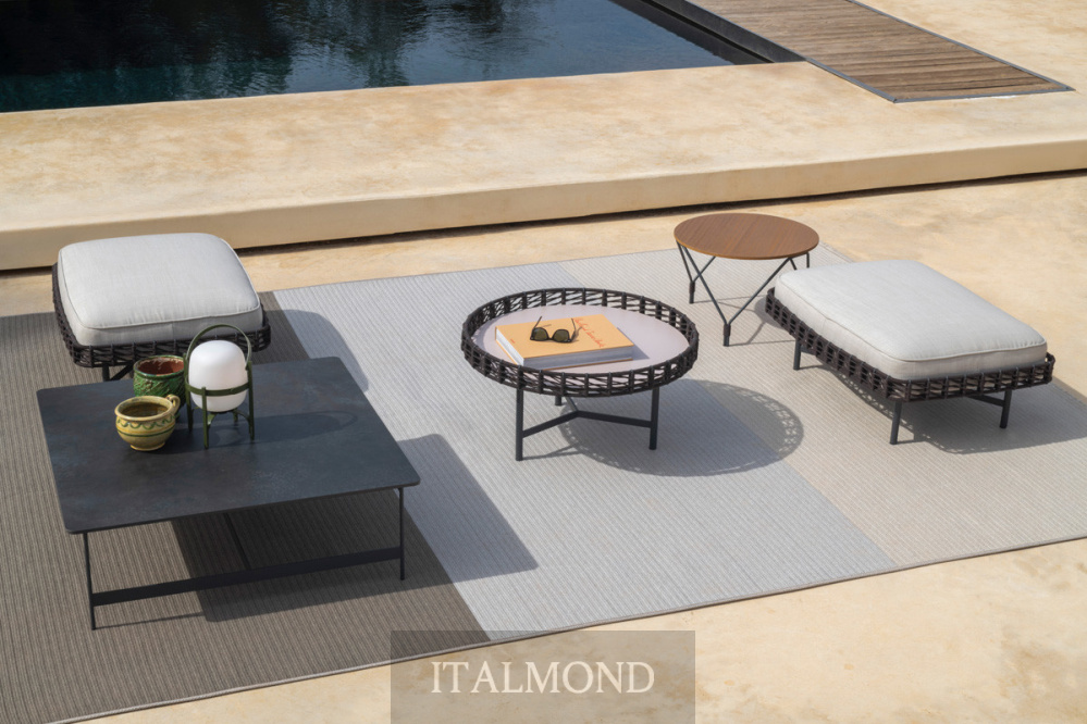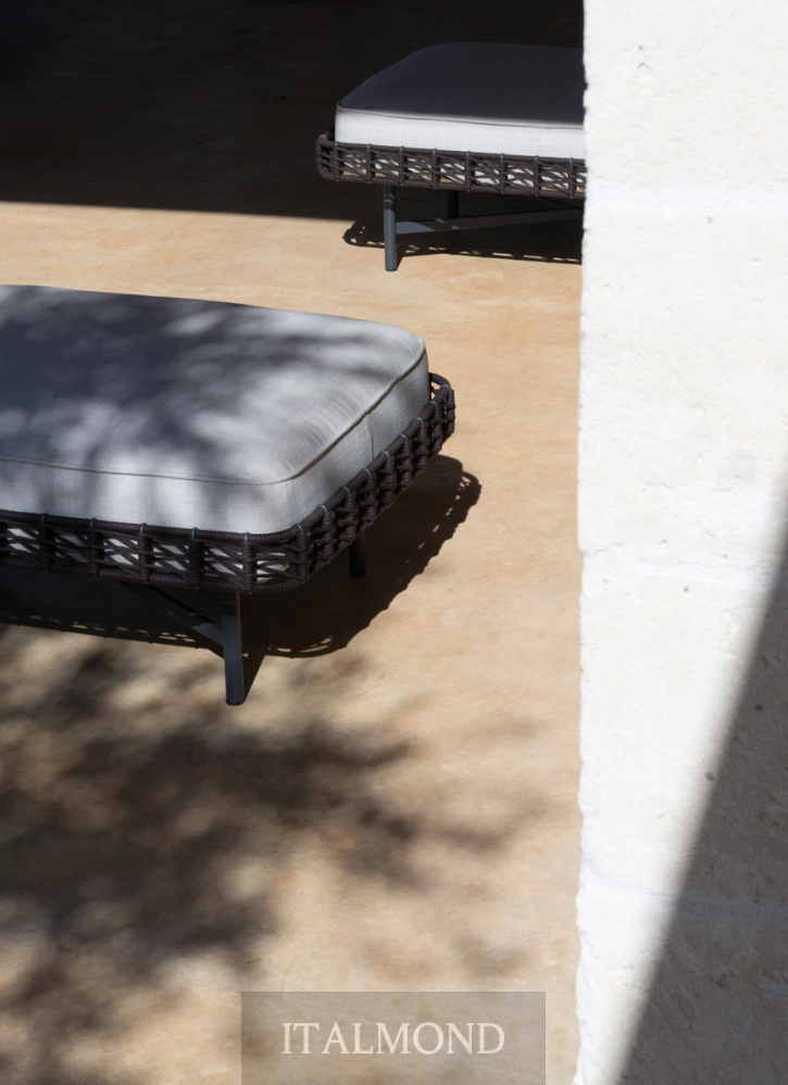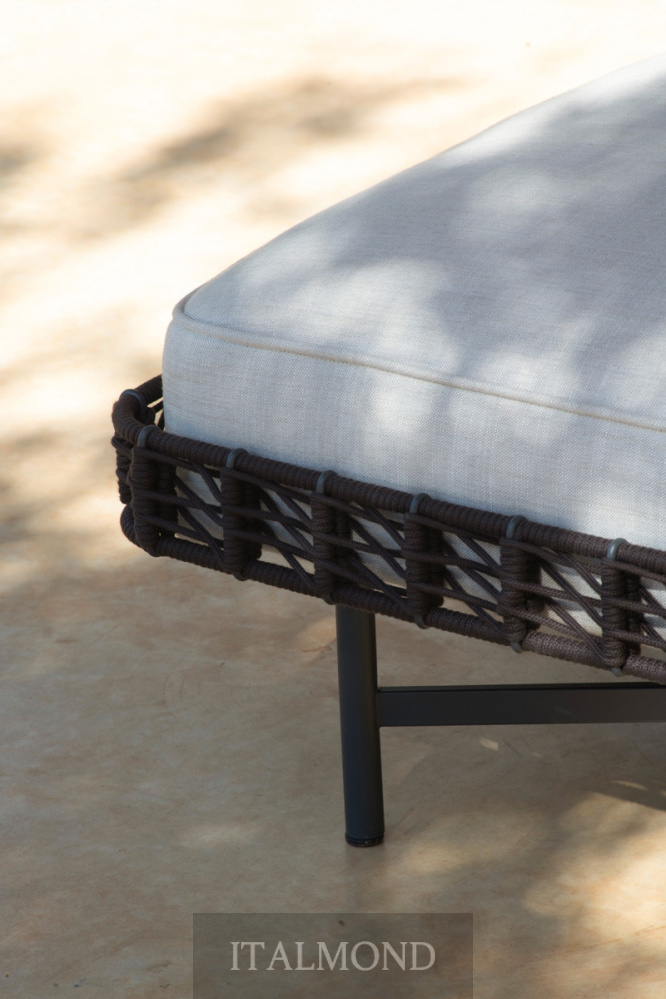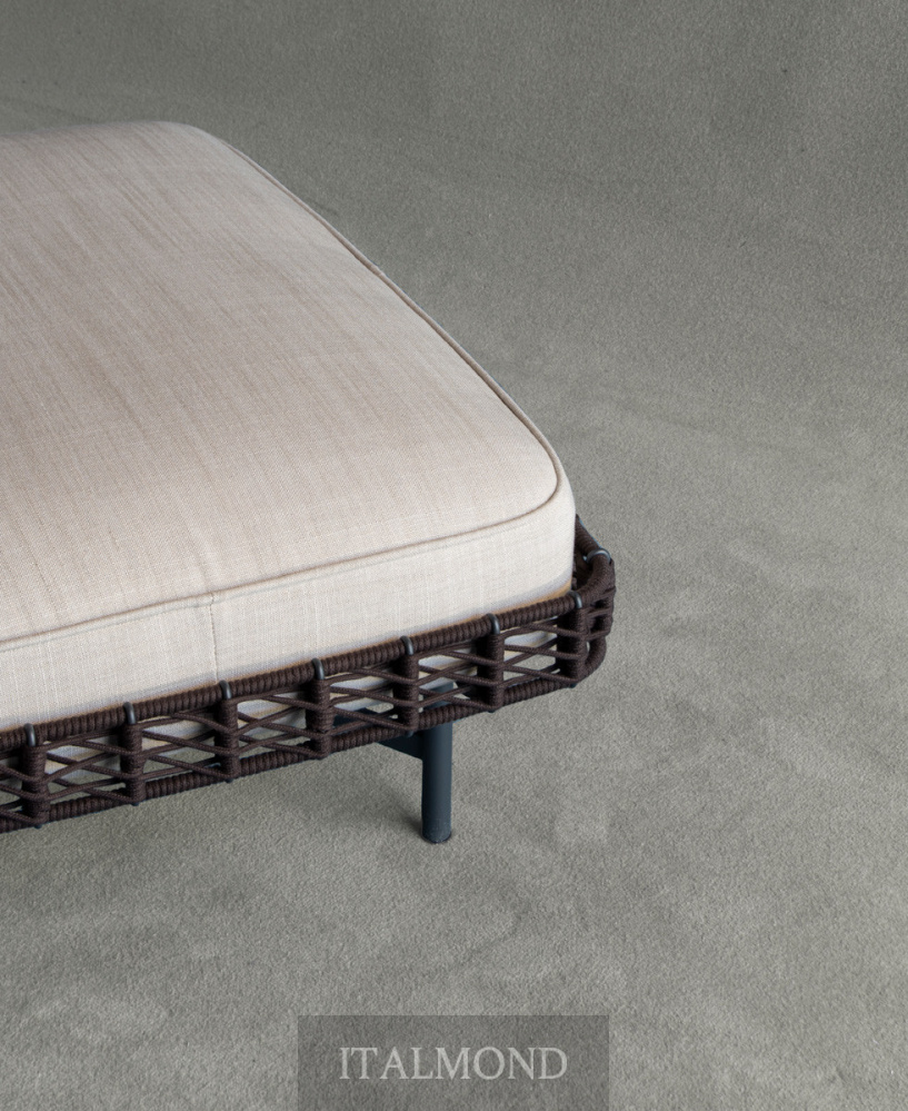 - Цвет и декор:Ropu отличается каркасом из тисненого металла, окрашенного в антрацитовый цвет , и сиденьем с набивкой из огнестойкой полиуретановой пены, доступной в вариантах обивки для улицы в соответствии с коллекцией. Каркас выполнен из темно-коричневого шнура «Гасса».