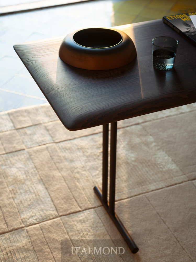 - Цвет и декор:Конструкция, состоящая из тонких и геометрических элементов , гармонично сочетается с функциональными поверхностями, образуя столы, скамью, письменный стол и дополняющие их журнальные столики.