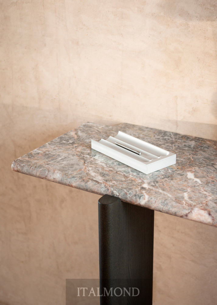 - Цвет и декор:Настенный консольный столик из коллекции E Claire сочетает в себе ясень и мрамор в минималистичном и изысканном дизайне. Взаимозамыкающиеся элементы, вдохновленные формой типичного французского десерта — эклера, определяют эстетику коллекции, предназначенной для жилых и коммерческих помещений.