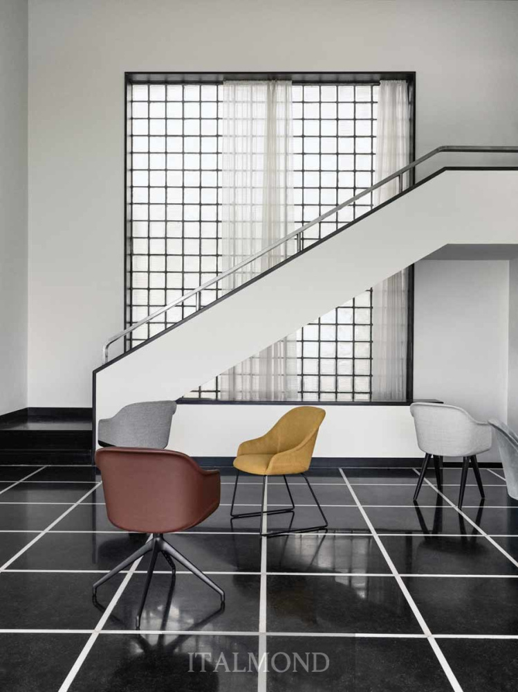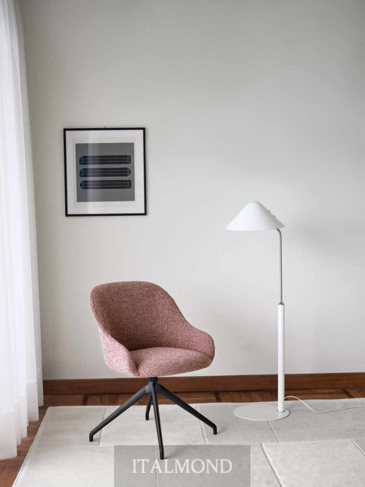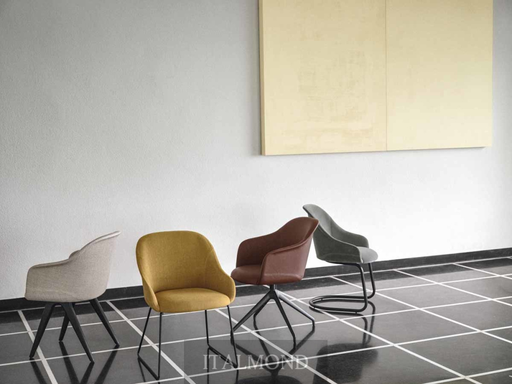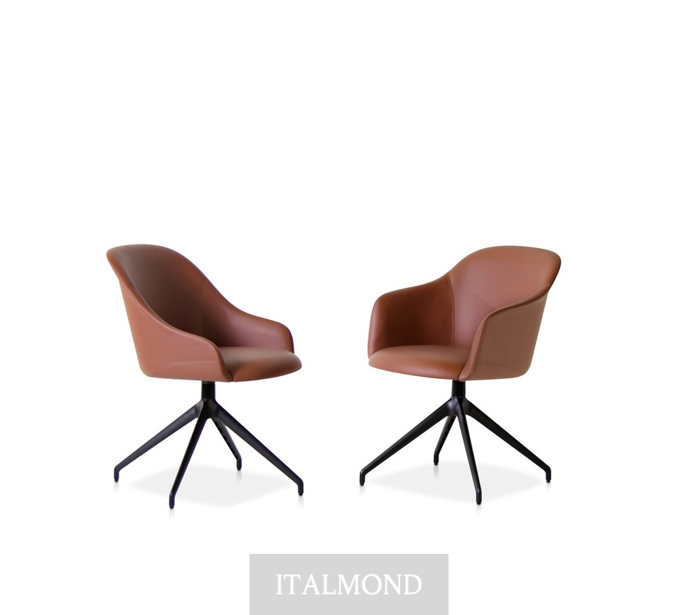 - Цвет и декор:Кресло с полностью обитыми сиденьем и спинкой, наполненными огнестойким пенополиуретаном, доступны с четырехлучевым поворотным основанием из тисненого окрашенного металла, в вариантах отделки Aval или черном цвете, с механизмом возврата.