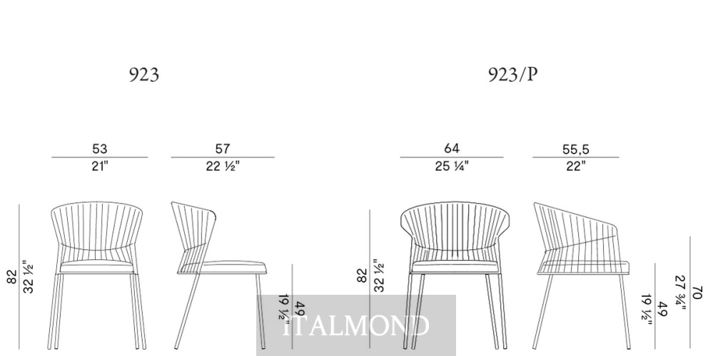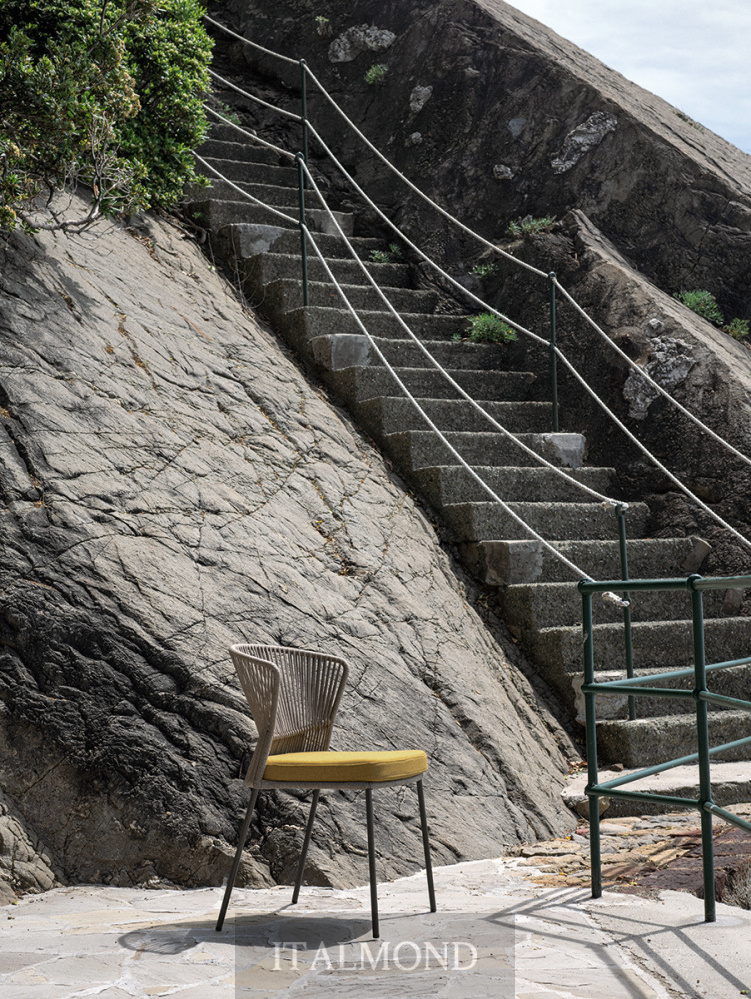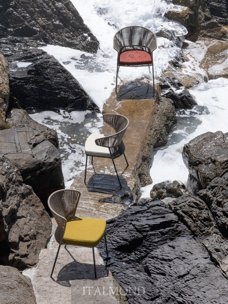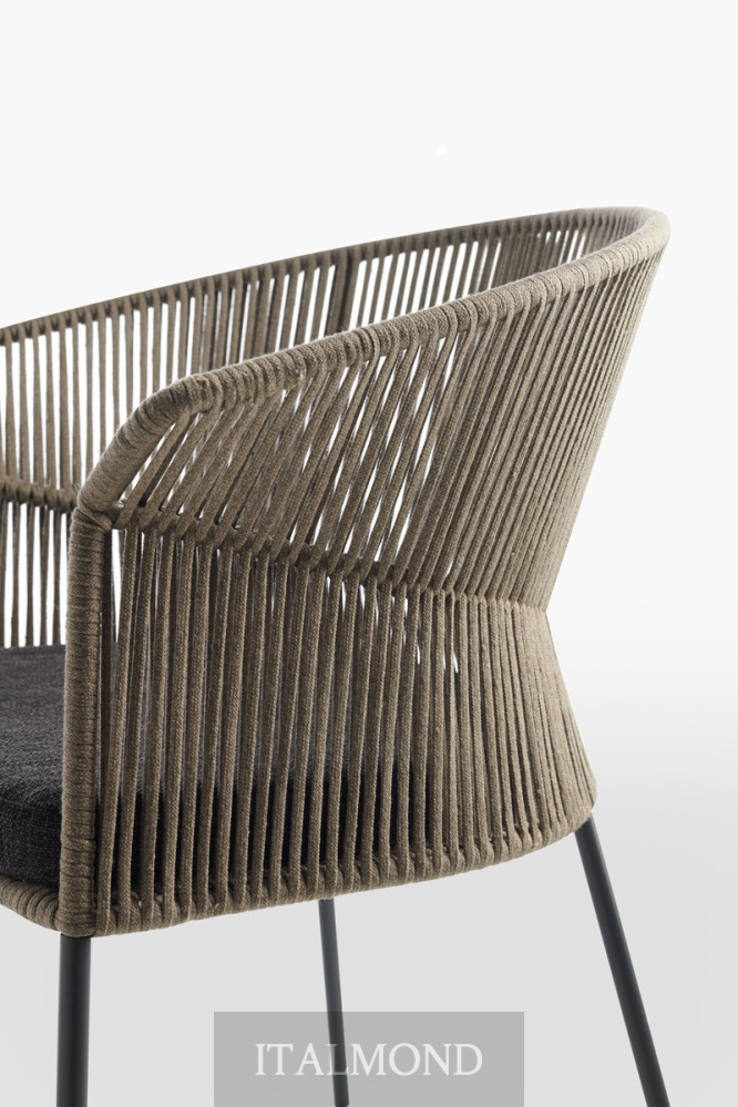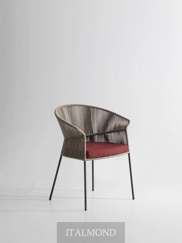 - Цвет и декор:Штабелируемые стул и небольшое кресло с подушкой для сиденья ( со съемным чехлом) имеют каркас из лакированного металла с порошковым покрытием для наружного применения, вручную сплетенный из ленты «Fly». Внутри подушки находится огнестойкая полиуретановая пена и полиэстеровый наполнитель. Водонепроницаемая тканевая подкладка с герметичными швами; финишная подкладка из тканей для наружного применения из каталога с дышащим сетчатым дном. Ножки из окрашенной трубы из нержавеющей стали AISI 316. Возможность штабелирования до 4 стульев с подушками и до 6 без подушек.