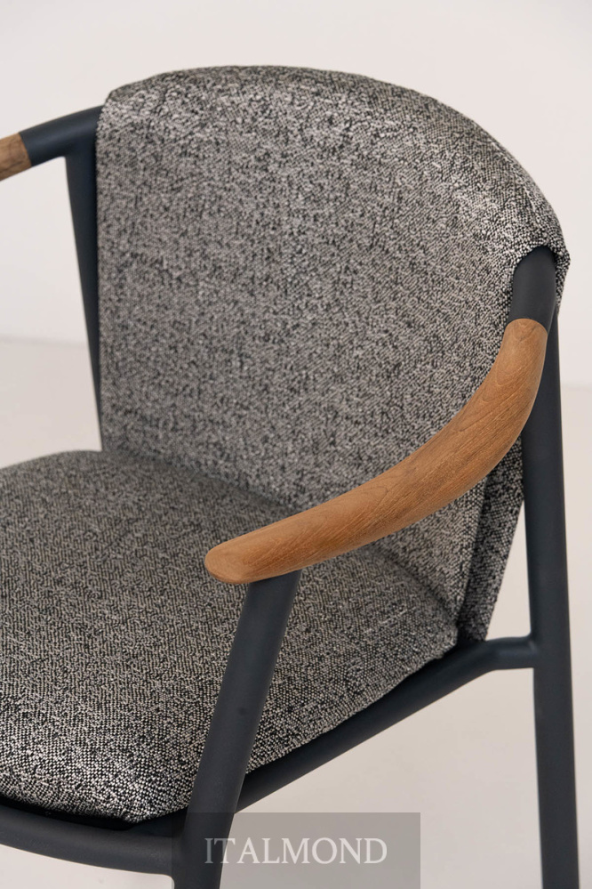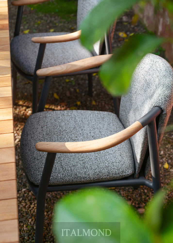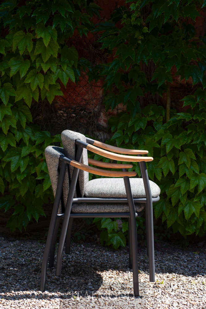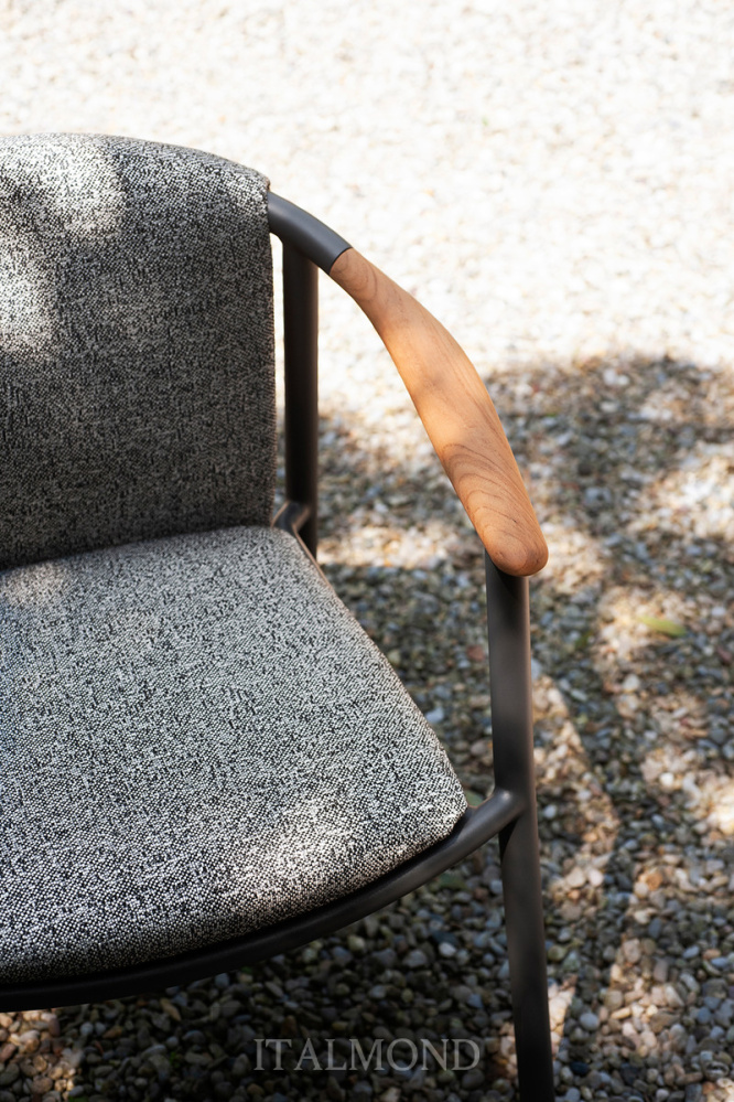 - Цвет и декор:азработанное для использования на открытом воздухе, кресло Solar выделяется своим алюминиевым каркасом с порошковым покрытием, обеспечивающим легкость и прочность, в сочетании с подлокотниками из массива тикового дерева, материала, придающего ощущение тепла и естественности.
