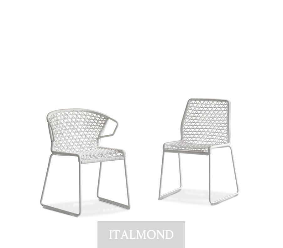 - Цвет и декор:Отличительной чертой штабелируемого стула и небольшого кресла является тонкий каркас из окрашенных металлических труб с полозьями на ножках , а также уникальное плетение из морских или ПВХ-веревок .