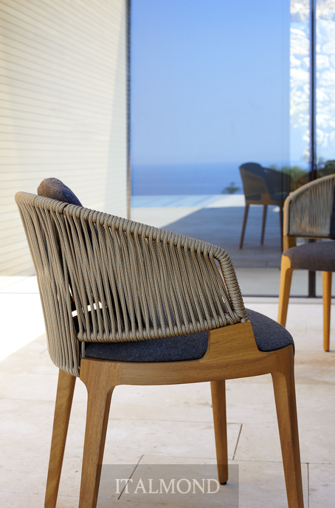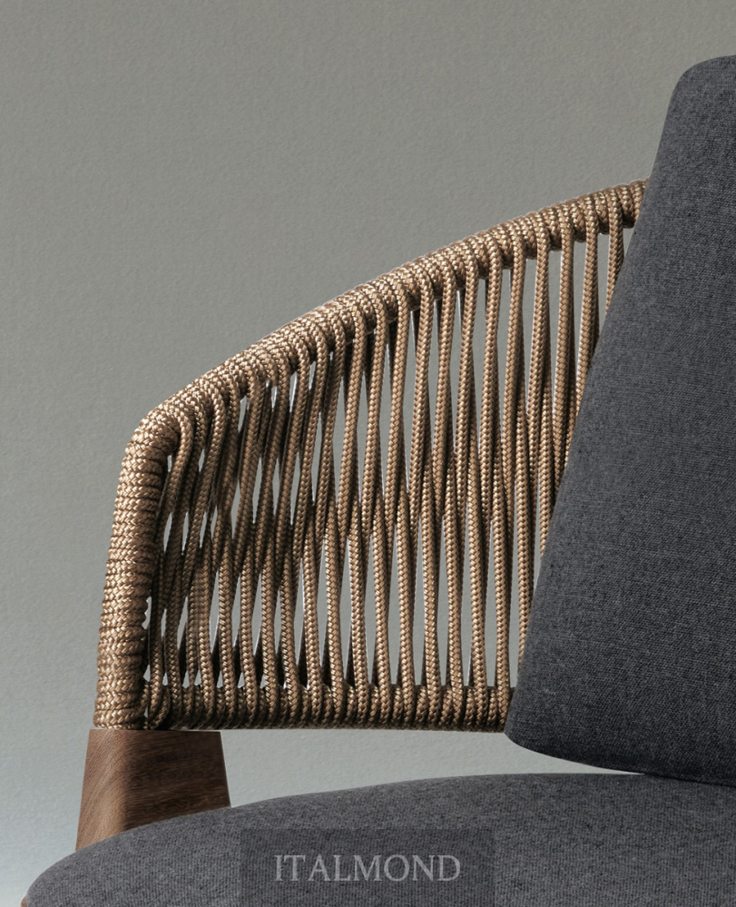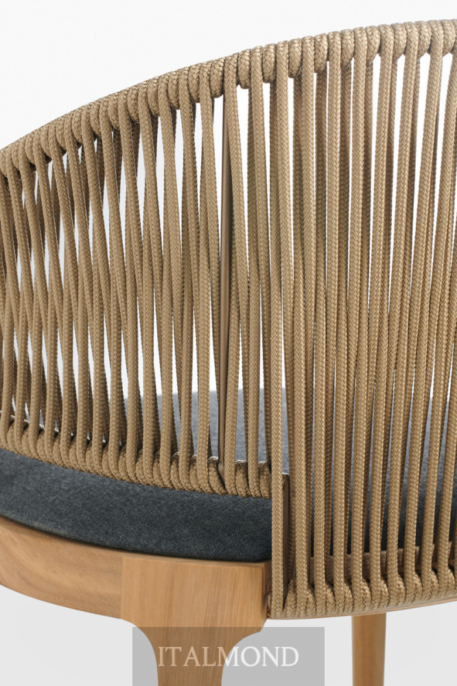 - Цвет и декор:Velis , выполненное в виде ванны для использования на открытом воздухе и дополненное подушкой для спины , подходит для любого интерьера, еще раз подчеркивая мастерство компании в адаптации продукции к любым условиям. Velis имеет каркас из массива дерева ироко , спинку из окрашенного металла, сплетенную вручную с использованием шнура «Гасса» или конопляной морской веревки , сиденье с набивкой из огнестойкого пенополиуретана и обивку из материалов, предназначенных для использования на открытом воздухе, в соответствии с коллекцией.