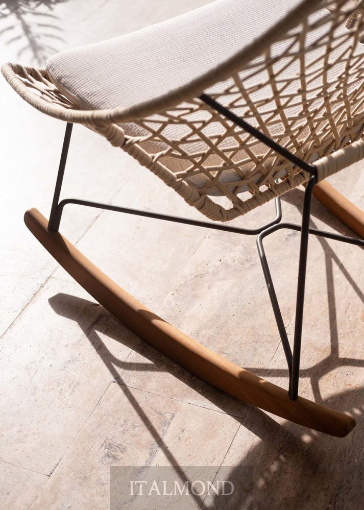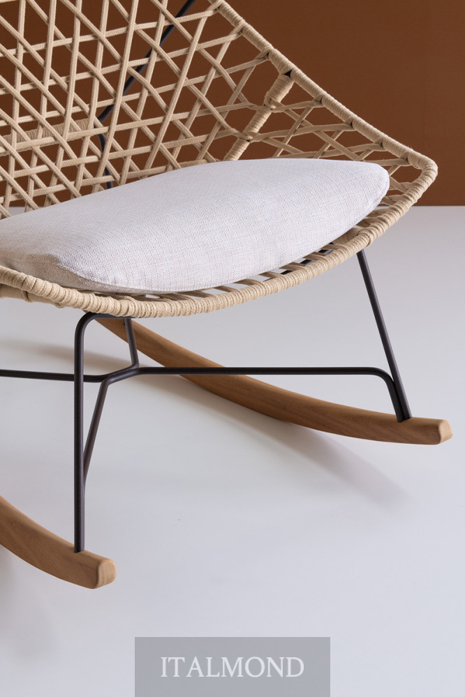 - Цвет и декор:В своей уличной версии коллекция Cut дополняет кресло-бержер подставкой для ног новым креслом, табуретом, стулом и креслом-качалкой , которые повторяют его лаконичный и продуманный дизайн. Коллекция выполнена из стального каркаса с эпоксидным порошковым покрытием, который формирует гармоничный, вытянутый силуэт ножек и сиденья, и вручную сплетенной бежевой лентой «Гасса». Плетение сочетается с мягкой контрастной подушкой сиденья, которая подчеркивает детали ручной работы за счет цветовых различий.