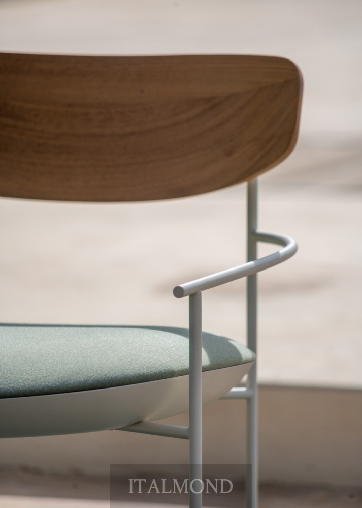 - Цвет и декор:Доступное в двух вариантах, для использования внутри и снаружи помещений, кресло Keel Light имеет прочную спинку из древесины ироко , каркас из тисненых металлических прутков, окрашенных эпоксидной порошковой краской в антрацитовый и авальский цвета, и мягкое сиденье с жестким основанием, окрашенным акриловой краской для использования на открытом воздухе в тот же цвет и с тонкой тиснением, что и каркас.