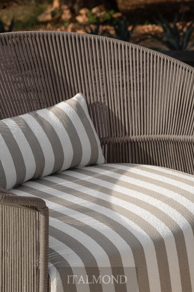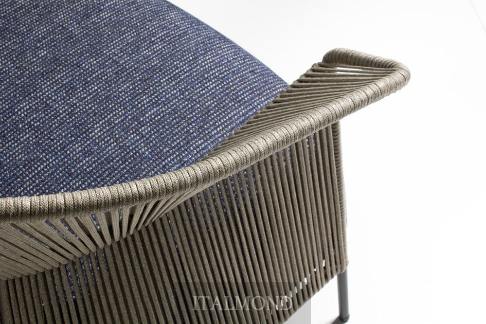 - Цвет и декор:Кресло имеет обволакивающую спинку , изготовленную из металлического каркаса с лакированным порошковым покрытием для наружного применения, вручную сплетенного из ленты «Fly». Ножки из окрашенной трубы из нержавеющей стали AISI 316. В комплект входит мягкая подушка сиденья со съемными чехлами . Внутри подушки находится огнестойкий пенополиуретан и полиэстеровый наполнитель. Водонепроницаемая тканевая подкладка с герметичными швами; финишная подкладка из тканей для наружного применения из каталога с дышащим сетчатым дном.