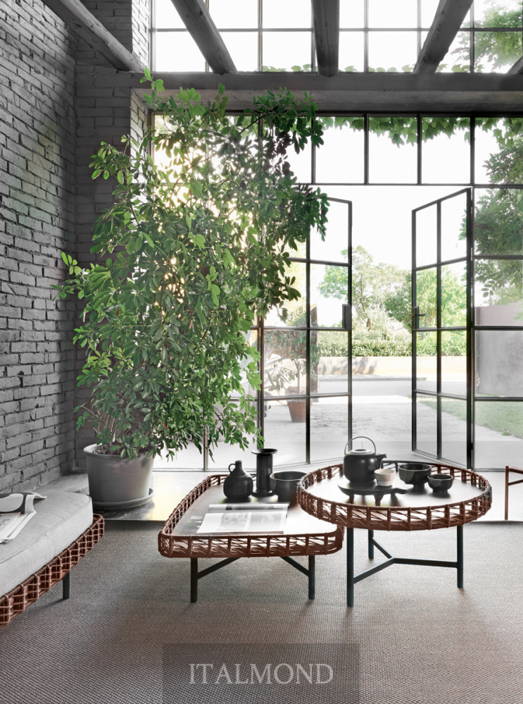 - Цвет и декор:Созданный на основе экзотических воспоминаний, журнальный столик Ropu выделяется изысканной плетеной окантовкой из кожаной веревки , проходящей по периметру конструкции и создающей раму для столешниц из мрамора, закаленного стекла с обратной покраской, ламинированного фарфора и HPL, а также для мягких подушек с профилем из шнура в виде мышиного хвоста. Журнальный столик Ropu доступен в двух вариантах : с высокими ножками и круглой столешницей , с низкими ножками и прямоугольной столешницей , с тисненым окрашенным металлическим каркасом и столешницей из мрамора, закаленного стекла с обратной покраской, ламинированного фарфора или HPL.