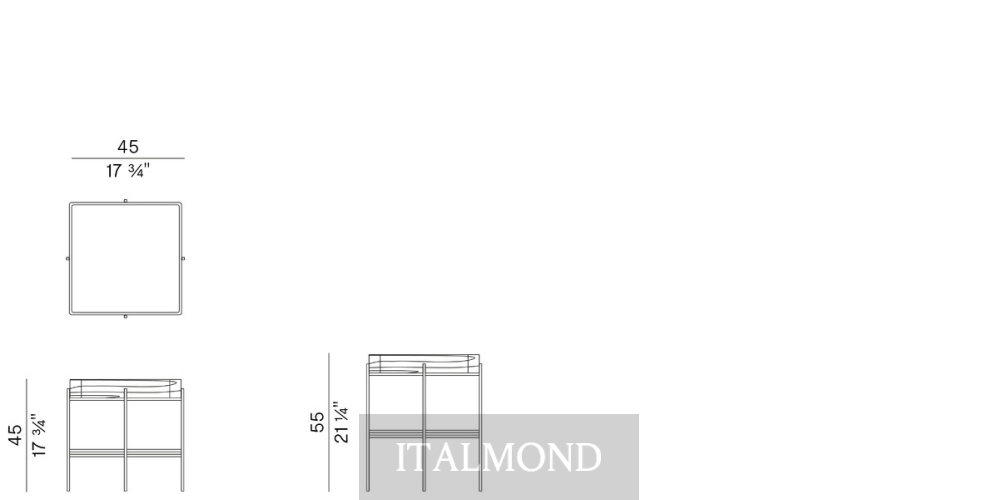 - Цвет и декор:Квадратный журнальный столик Tray, доступный в двух вариантах высоты , отличается каркасом из металла с тиснением антрацитового цвета или бронзовой латуни и квадратной столешницей из мрамора и закаленного стекла с обратной покраской. Каркас из ясеня , создающий своего рода поднос. Отделка соответствует коллекции.