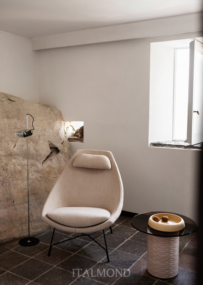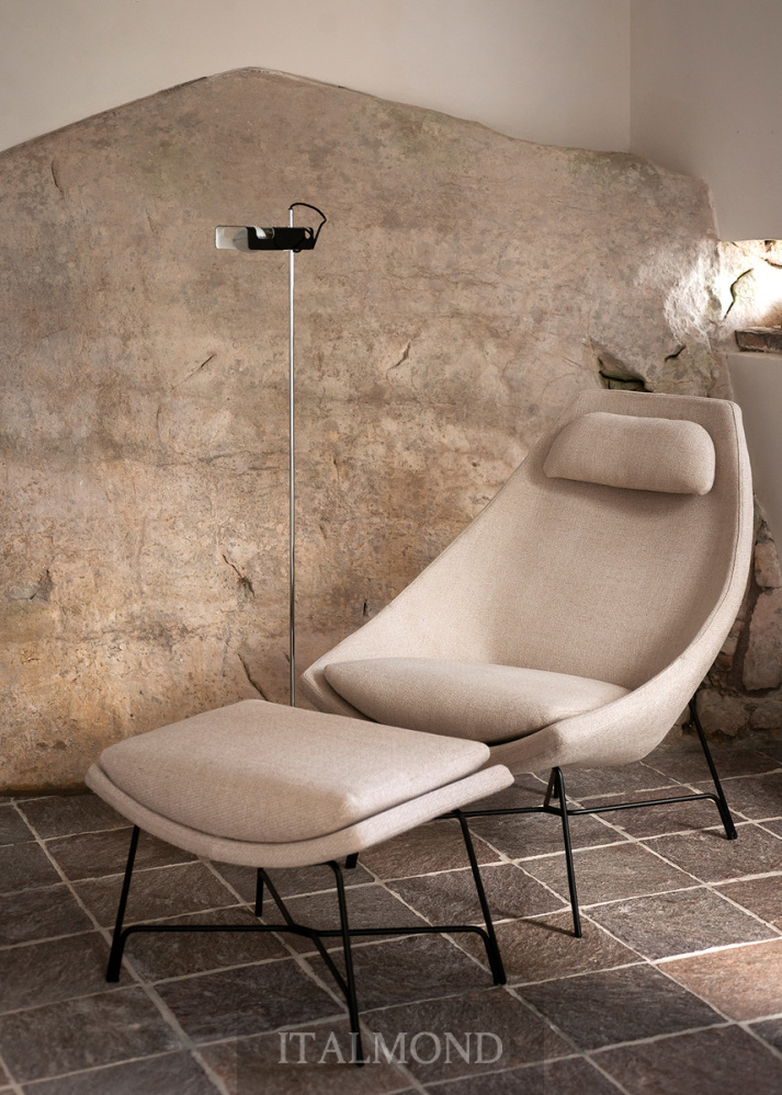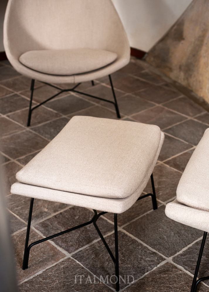 - Цвет и декор:Cut доступно в фиксированной версии с подставкой для ног , отличающейся центральным основанием из тисненого черного алюминия , обитым огнестойким пенополиуретаном и чехлами в соответствии с коллекцией.