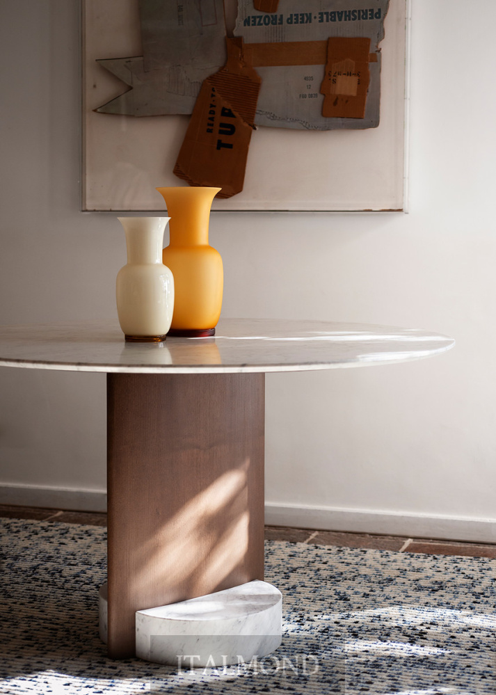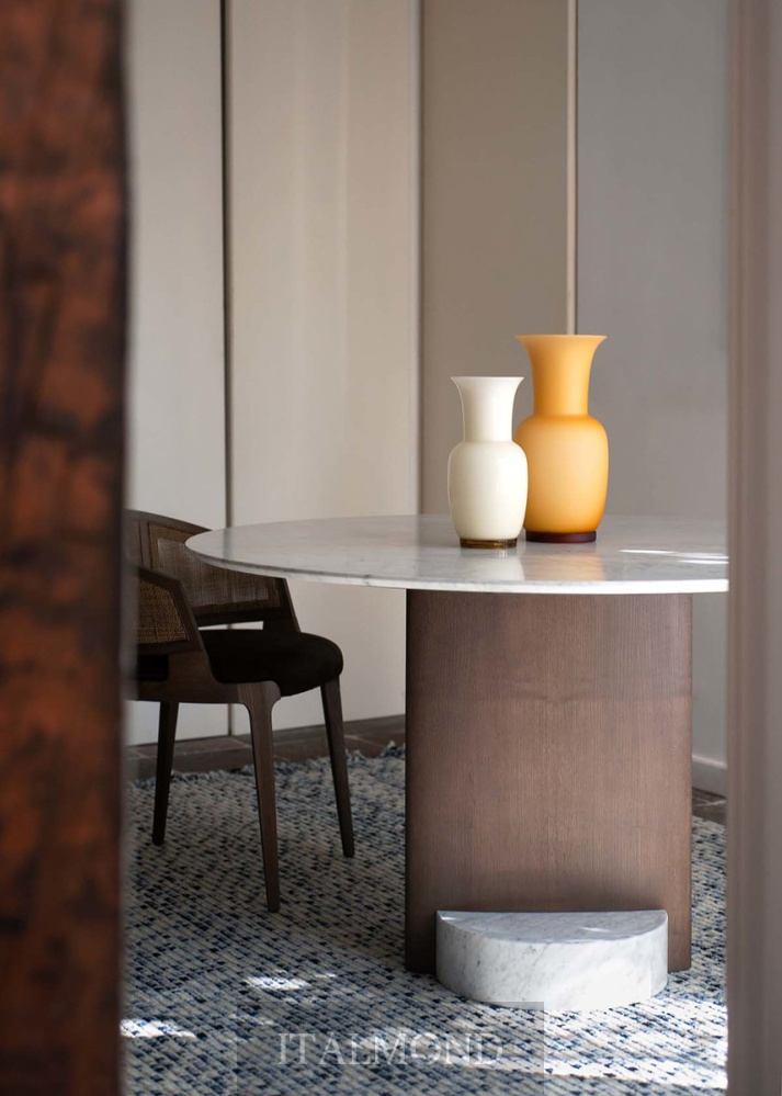 - Цвет и декор:Коллекция Syn исследует взаимосвязь между многогранными объемами, которые, объединяясь, создают уникальный предмет мебели. Эта серия представлена двумя обеденными столами с круглыми и прямоугольными столешницами, главным элементом которых является основание, составленное из взаимодействия форм и материалов. Основание символизирует сердце проекта: две, казалось бы, далекие друг от друга формы, параллелепипед и цилиндр, пересекаются, образуя единый величественный объем.