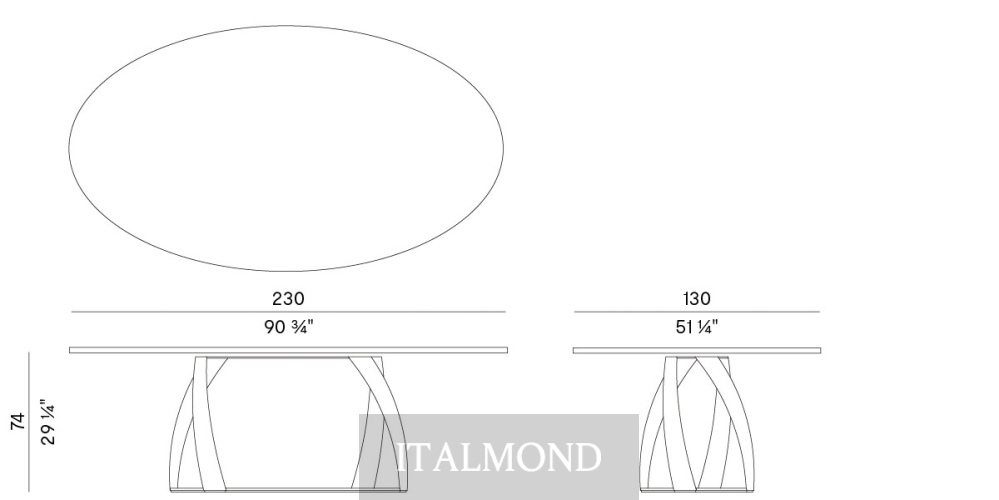 - Цвет и декор:Стол с удлиненным основанием и эллиптической столешницей из ореха Каналетто, мрамора или прозрачного закаленного стекла .