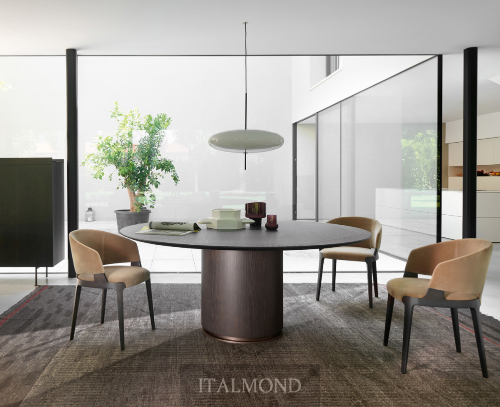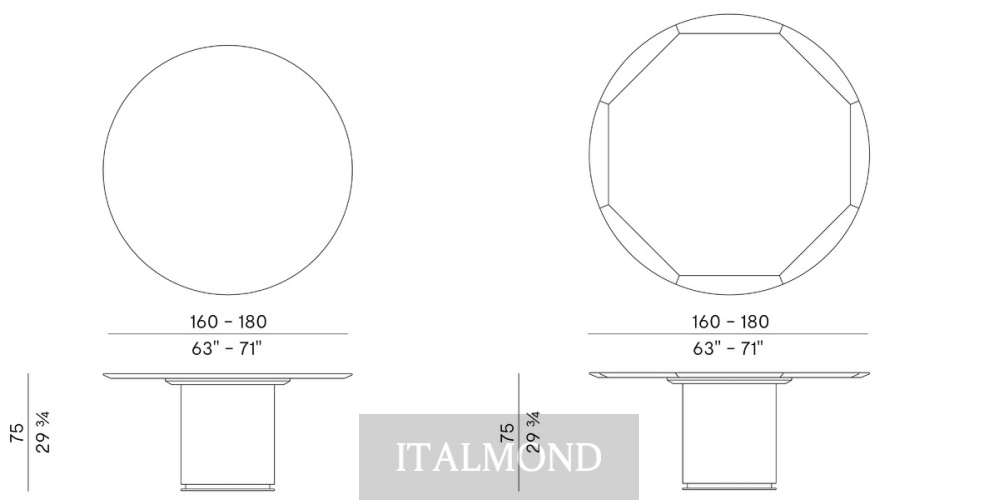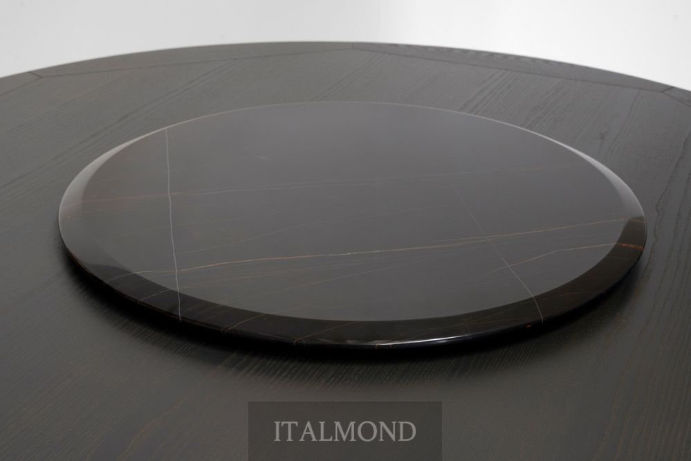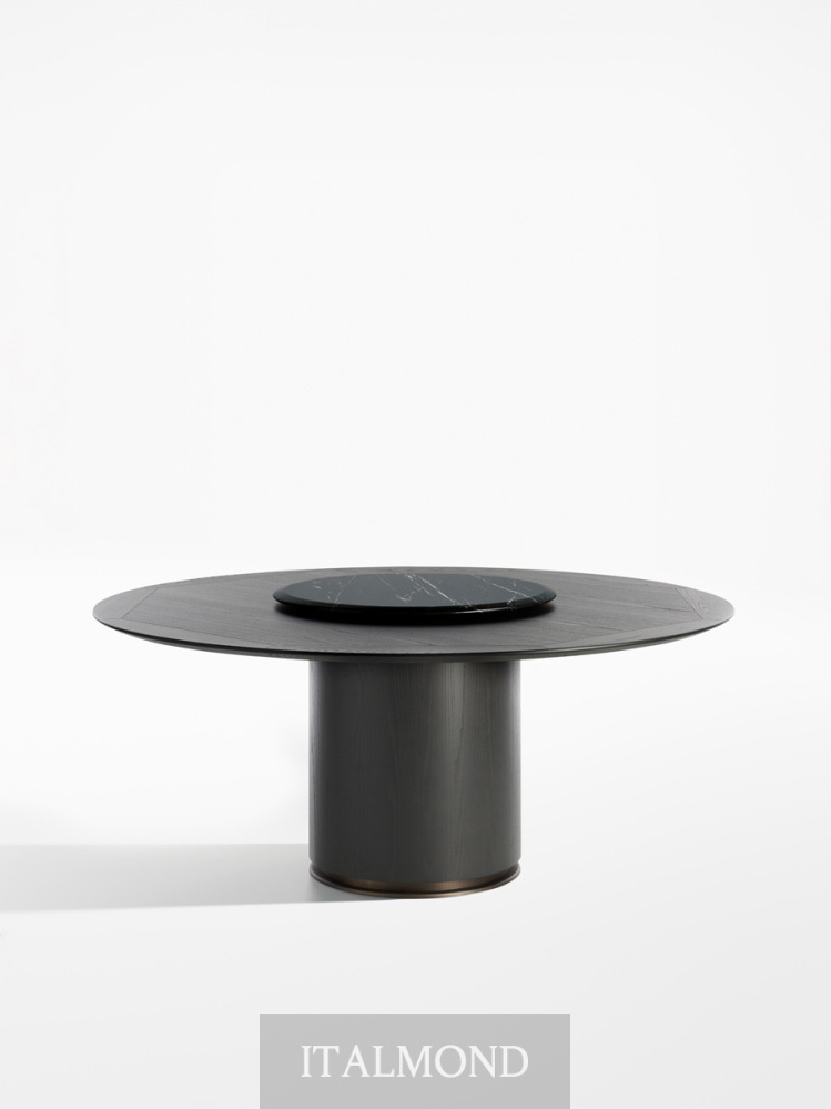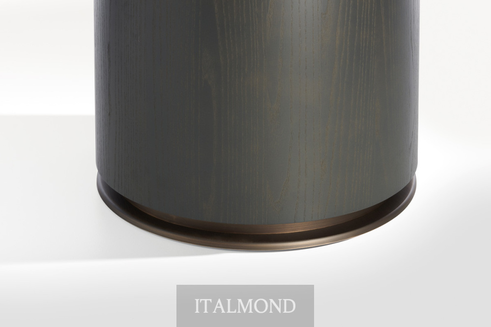 - Цвет и декор:Материальный монолит, возникающий из сочетания двух чистых и геометрических форм – круга и цилиндра. Особая деталь из бронзированной латуни приподнимает основание над землей и подчеркивает его профиль. Столешница доступна в двух вариантах: из ясеня с цельными краями или из мрамора . В качестве аксессуара предлагается вращающаяся подставка из мрамора. Этот стол может иметь различные варианты отделки в зависимости от размеров столешницы.