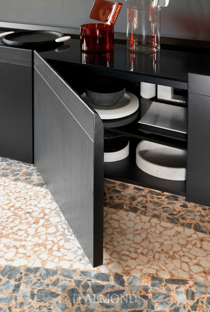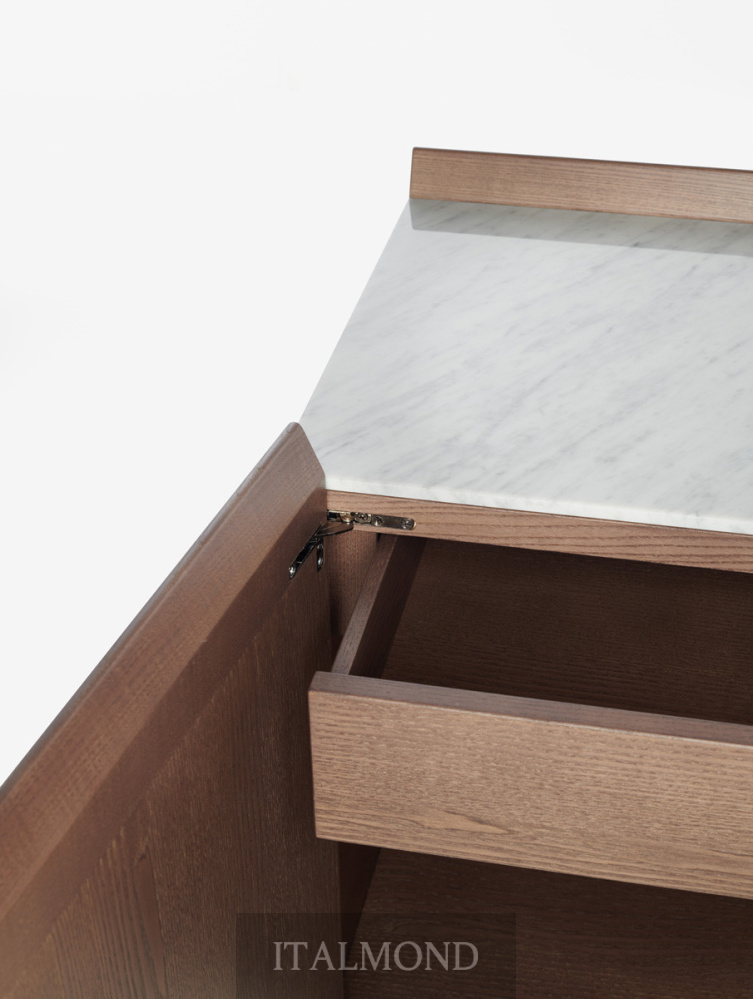 - Цвет и декор:Шкаф Avant , доступный с бронзовыми латунными ножками или опорами , отличается строгим объемом из шпонированного ясеня или ореха Каналетто с изысканными деталями: верхний край задней стенки и дверей из массива ясеня или ореха Каналетто доминирует над столешницей из закаленного черного стекла с обратной покраской или мрамора, создавая своего рода поднос. За дверцами скрываются полки из закаленного черного стекла с обратной покраской и, по запросу , центральные ящики . Завершают проект детали в виде лаконичных бронзовых ножек и петель с доводчиками .