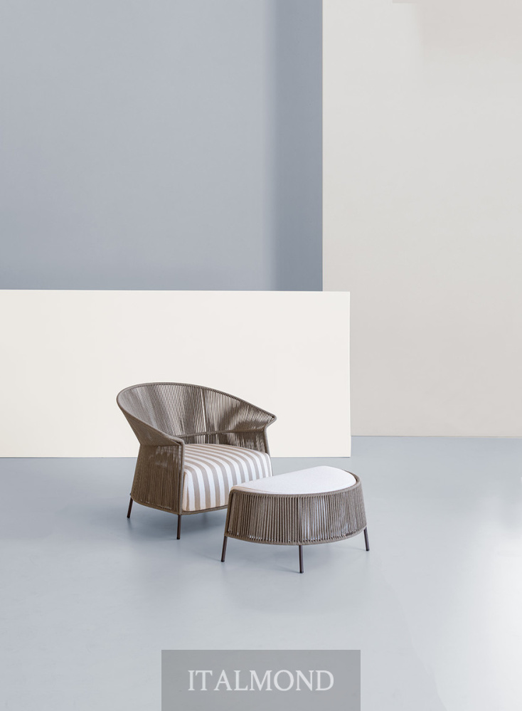 - Цвет и декор:Отличительной чертой сидений семейства Ola является форма обволакивающей спинки, выполненной из металлического стержня, которая напоминает плавный образ волны. В коллекцию, которая уже включает в себя штабелируемый стул, небольшое кресло, кресло-ванну, кресло, диван и табурет, добавлен новый продукт: пуф, который гармонично продолжает историю коллекции, сочетая в себе плетение и изысканные детали.