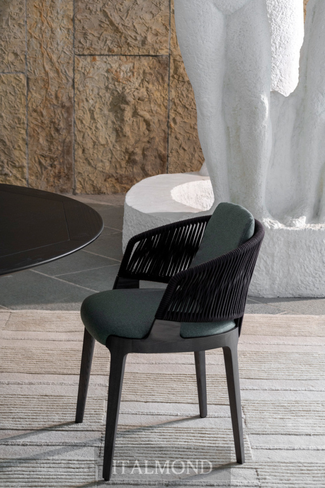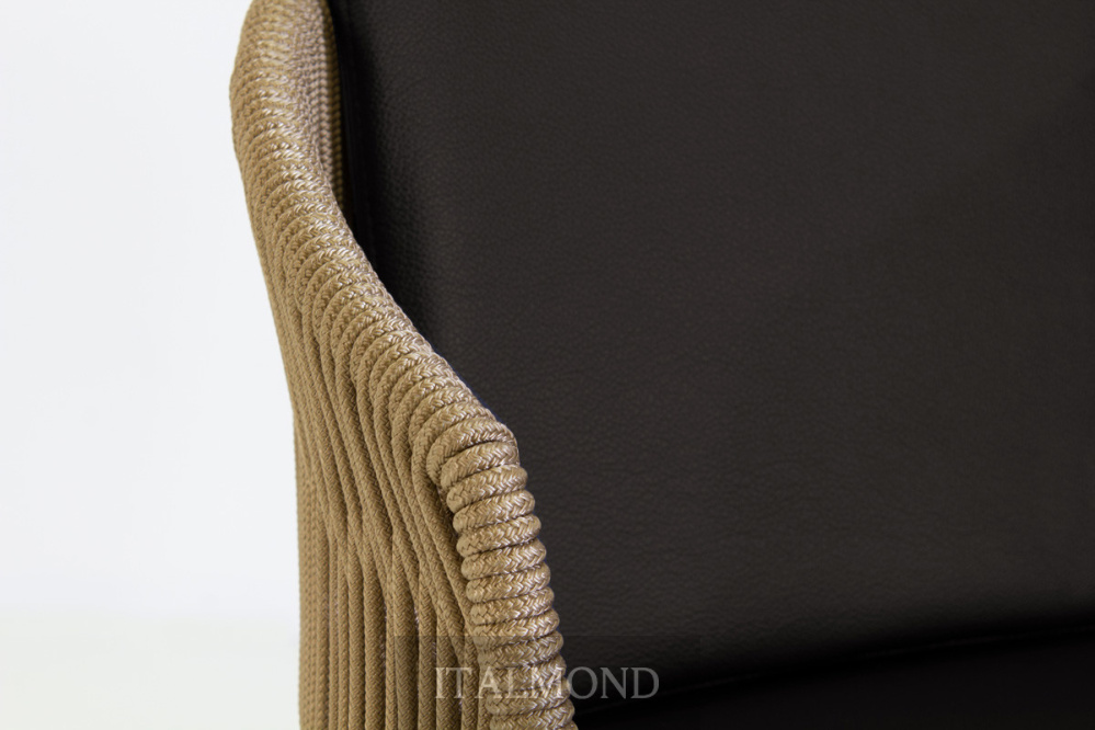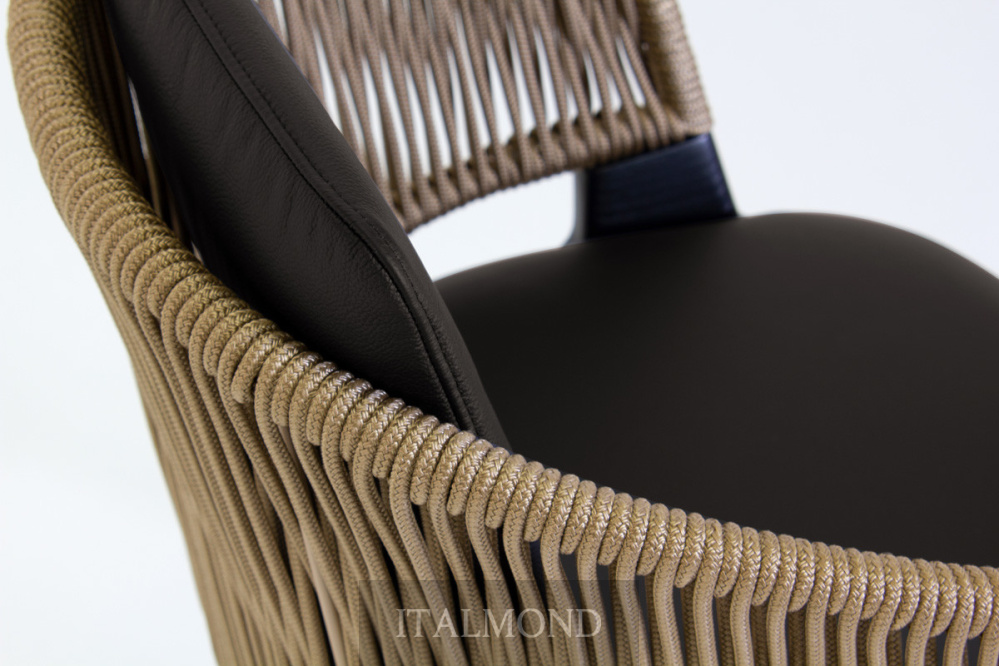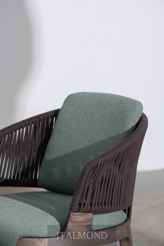 - Цвет и декор:Представленная в варианте кресла-ванны для использования в помещении , модель имеет каркас из массива ясеня или ореха Каналетто, спинку с окрашенным металлическим каркасом, сплетенным вручную из веревки «Гасса» или конопляной морской веревки , сиденье с набивкой из огнестойкого пенополиуретана и обивкой, выполненной в соответствии с отделкой для использования в помещении, как и в других коллекциях. Подушка для сиденья входит в комплект.