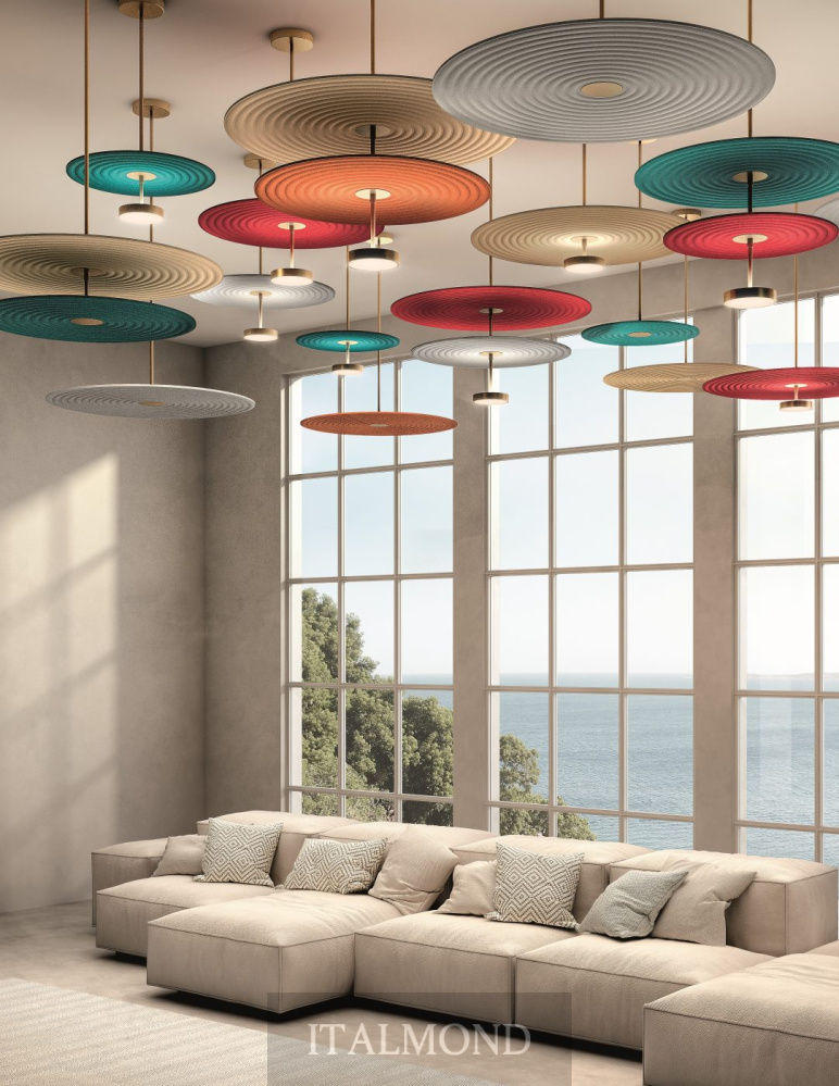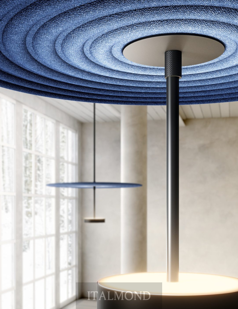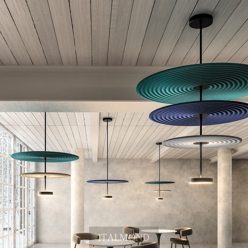 - Цвет и декор:Модульная подвесная система с металлическим каркасом трех размеров, доступная в матовом золотистом и черном цветах. Звукопоглощающие тканевые диски доступны в трех диаметрах и следующих цветах: бордовый, темно-синий, черный, кирпичный, песочный, светло-серый, темно-зеленый. Конструкции также доступны в качестве декоративного элемента без подсветки.
