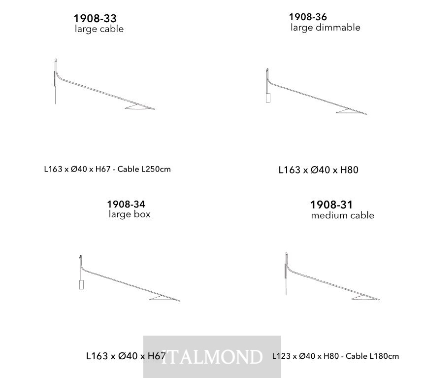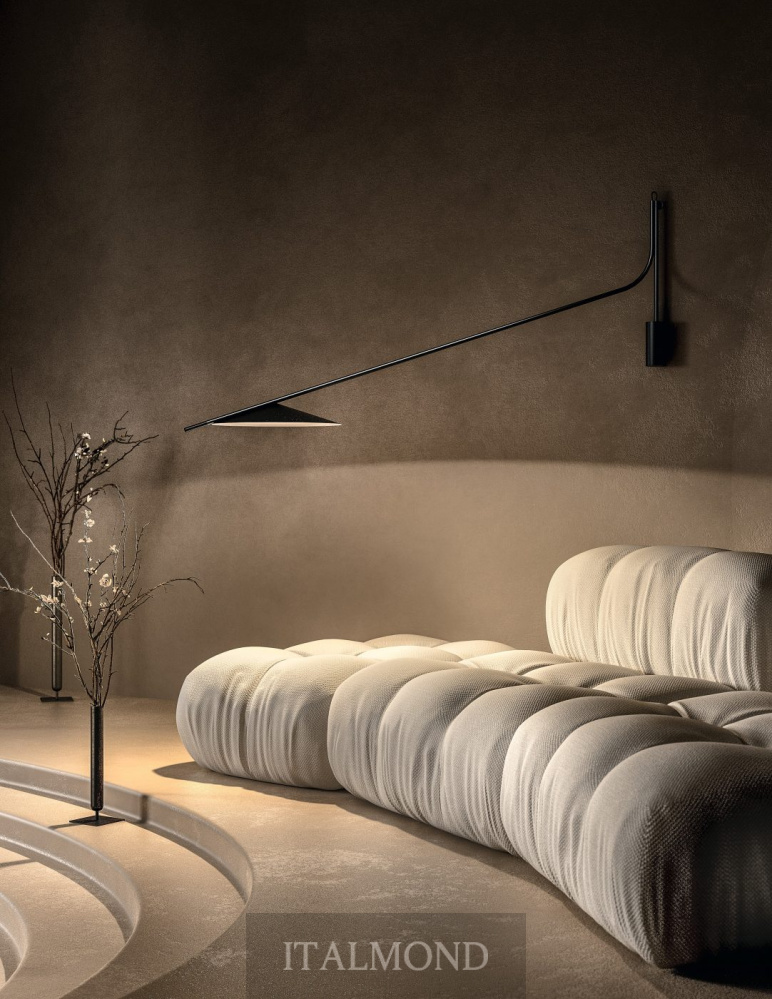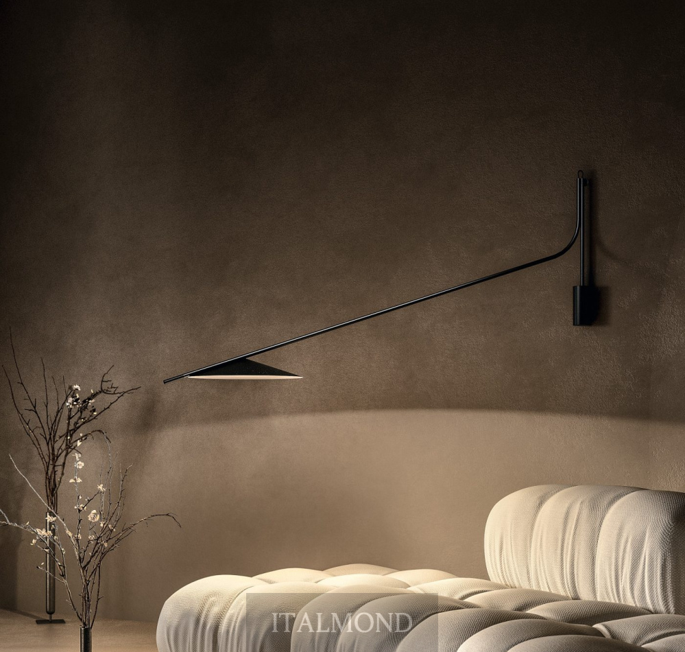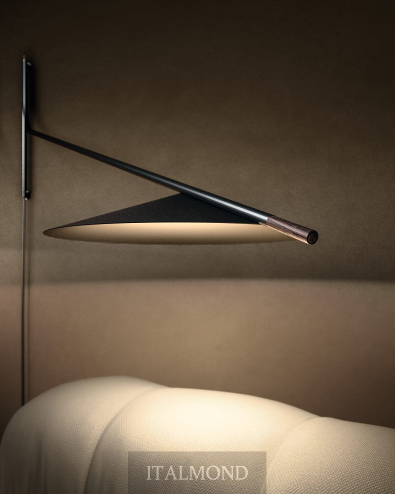 - Цвет и декор:Настенное крепление, стойка и абажур из окрашенной стали. Название Glifo происходит от рисунка из двух линий, которые, подобно шрифту, определяют его пространство. Вертикальный элемент, являющийся также точкой опоры для всего вращения лампы, и наклонный элемент, отходящий от стены, определяющий угол раскрытия абажура и предлагающий точку опоры с деревянной отделкой для изменения положения лампы и регулировки яркости света