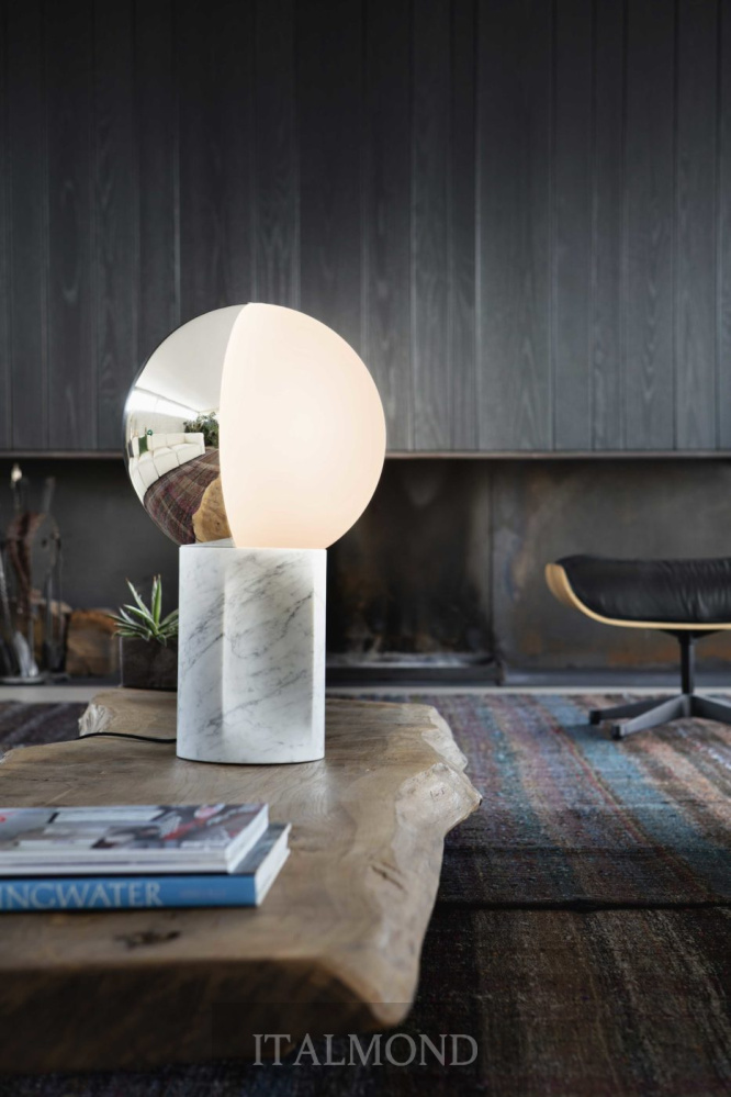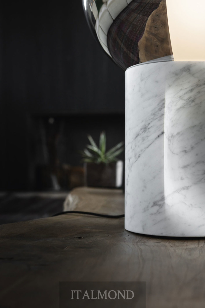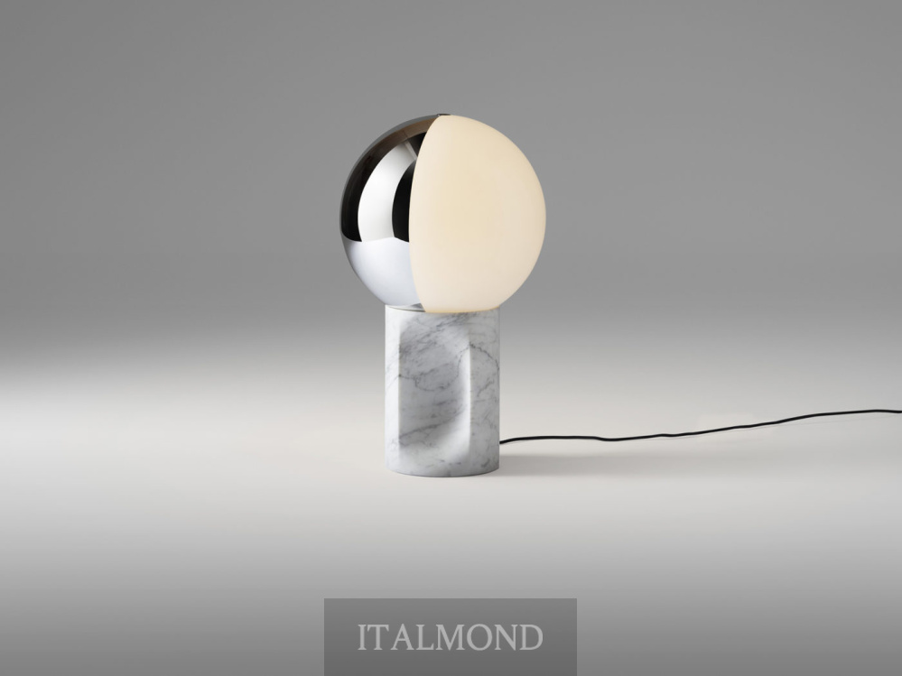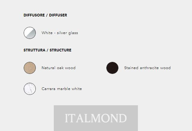 - Цвет и декор:Напольная и настольная лампа с основанием из дуба, тонированного антрацитового дерева или белого мрамора Carrara. Вращающийся на 360° двухцветный абажур из выдувного стекла белого и серебристого цвета.