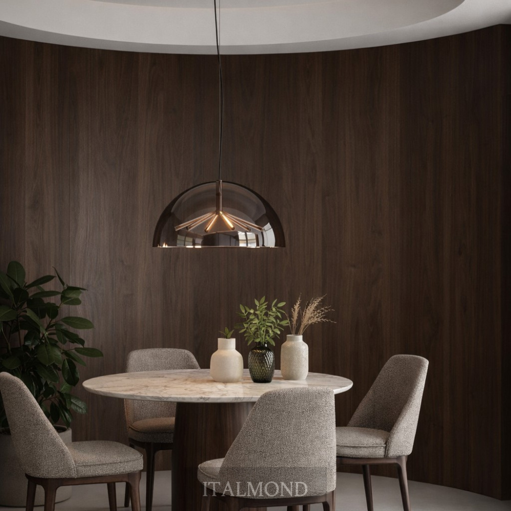 - Цвет и декор:Подвесной светильник с куполообразным абажуром из боросиликатного стекла и конструкцией, состоящей из шести плафонов, обеспечивающих прямое и непрямое освещение. Плафоны покрыты оксидированным боросиликатным стеклом.