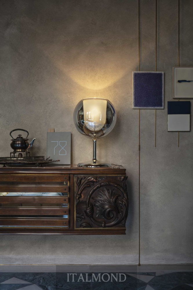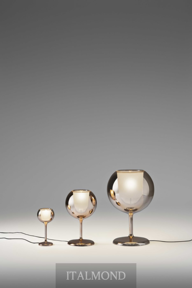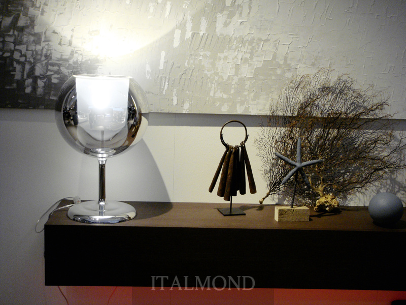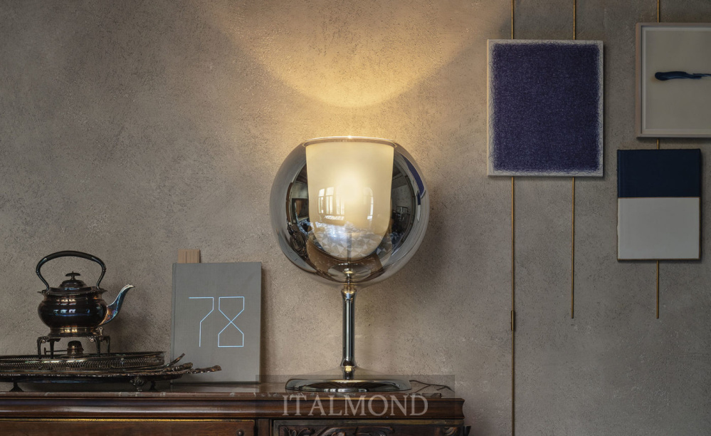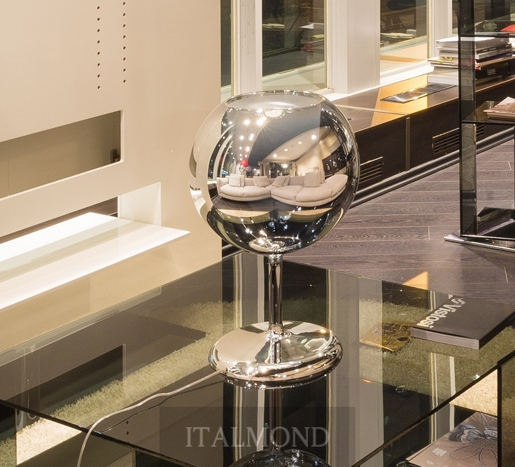 Настольная лампа GLO из коллекции фабрики Penta - оригинальный аксессуар для украшения кухни, бара, бильярдной. Внутри чаши - диффузор, покрытие стеклянного плафона - хромированное. Служит естественным компаньоном к подвесной люстре Glo, но может использоваться отдельно.