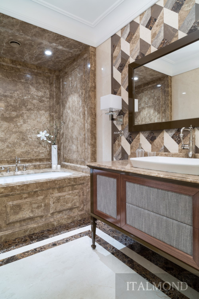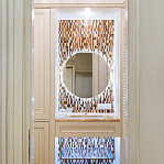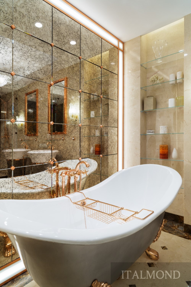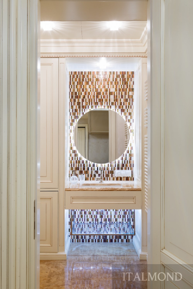- Зеркало с подсветкой – фабрика Falper; столик – фабрика Gaia Mobili