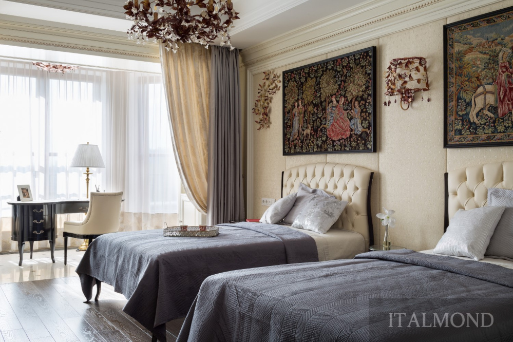 - Кровати, тумбочки, кресла, столик под зеркало, пуф, столик в эркер и стул (фото 13) – фабрика Galimberti Nino